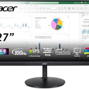 AcerAcer CB272 Ebmiprx – Monitor de oficina en casa con marco cero FHD 1920 x 1080 de 27 pulgadas | AMD FreeSync | 1ms VRB | 100Hz | 99% sRGB | Soporte ajustable en altura con giro, inclinación y pivote