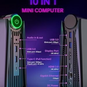 ACEMAGICIAN [PC para juegos] Ryzen Mini PC, AMD Ryzen 7 5700U (hasta 4.3 Ghz) 16 GB DDR4 512 GB NVME SSD Mini computadora de escritorio, mini computadoras [WiFi6/BT5.2] [4K UHD/RGB Lights/3 modos