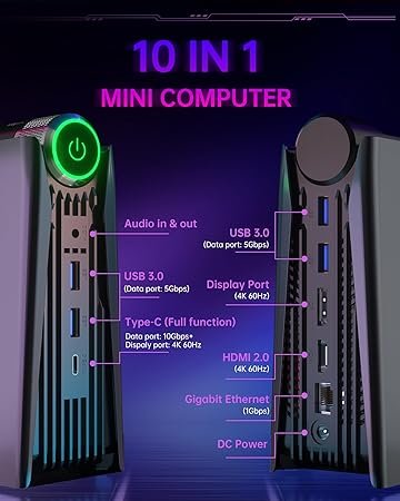 El Acemagician no solo destaca por su rendimiento, sino también por su estética. Con capacidades de 4K UHD y luces RGB, este mini computadora de escritorio se adapta a diferentes modos de uso, ofreciendo un atractivo visual único para su setup.
